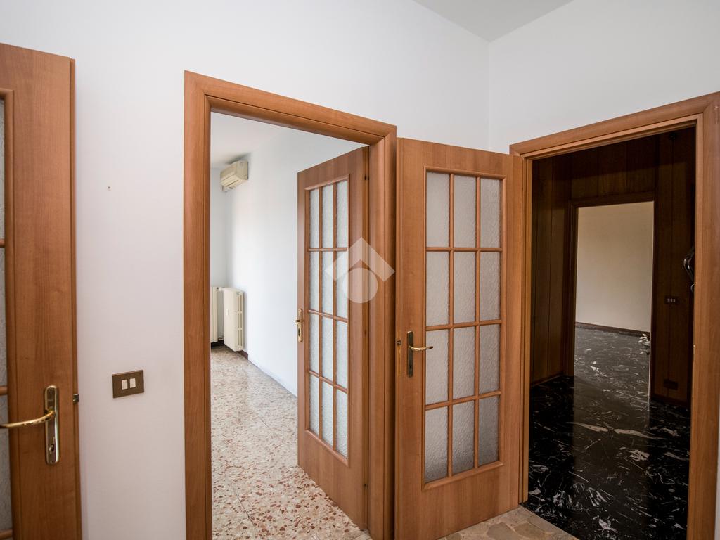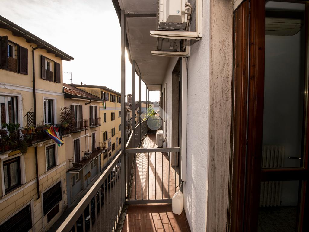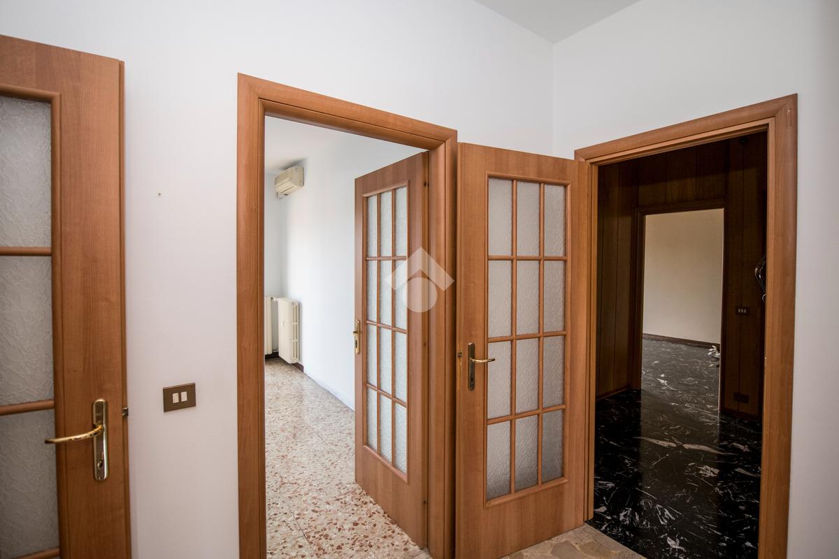 La soluzione abitativa apre la sua porta d'ingresso su un disimpegno spazioso, che da accesso al soggiorno di generosa metratura con ampia balconata, la cucina abitabile con balcone di servizio. Proseguendo nella zona notte tramite un ulteriore disimpegno, si accede alla camera matrimoniale con balcone, la seconda camera, il bagno finestrato con doccia ed in fine il ripostiglio. Possibilità di ricavare una terza camera.