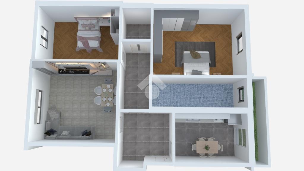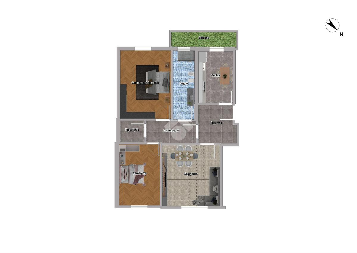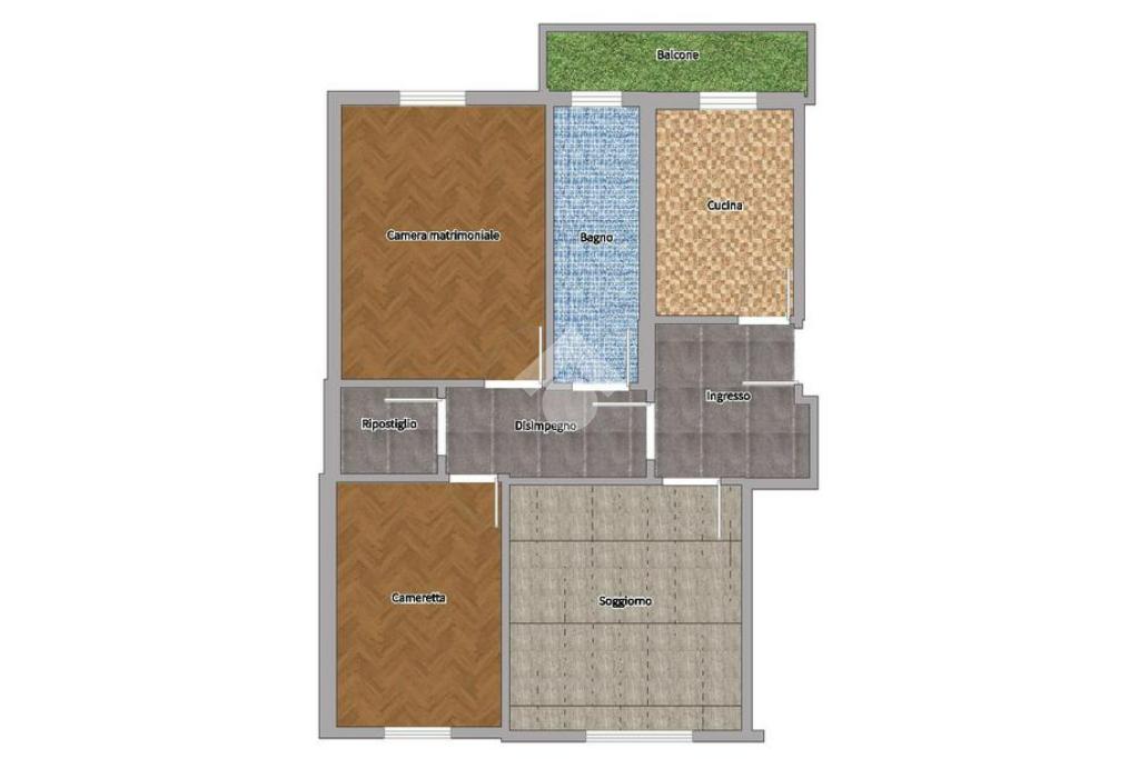L'appartamento è composto da ampio ingresso, soggiorno, cucina abitabile con balcone. Proseguendo nella zona notte, il disimpoegno da accesso alle due camere da letto, il bagno finestrato ed infine il ripostiglio.