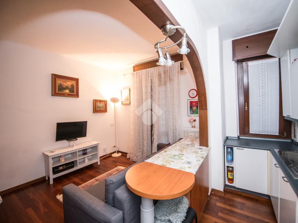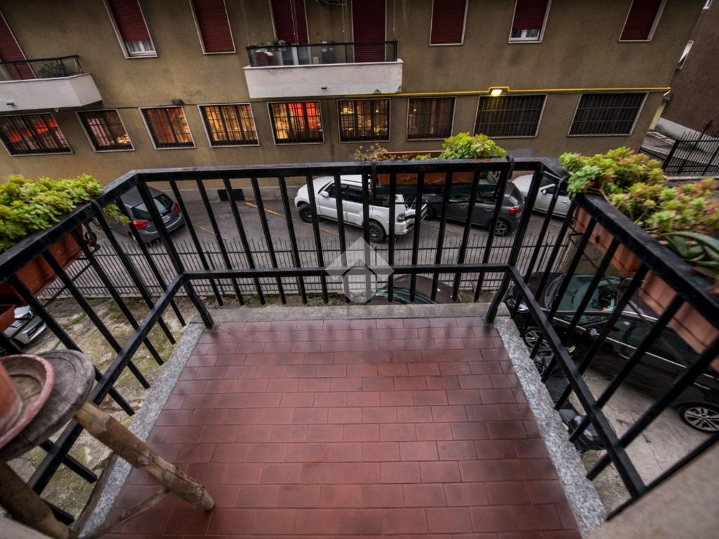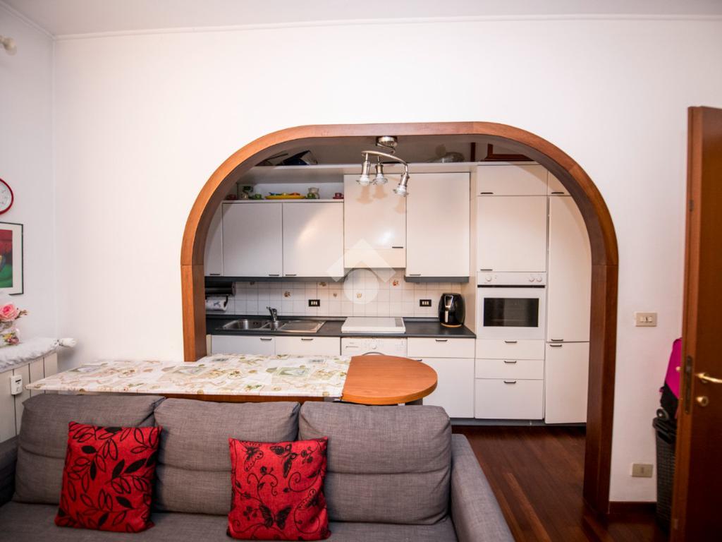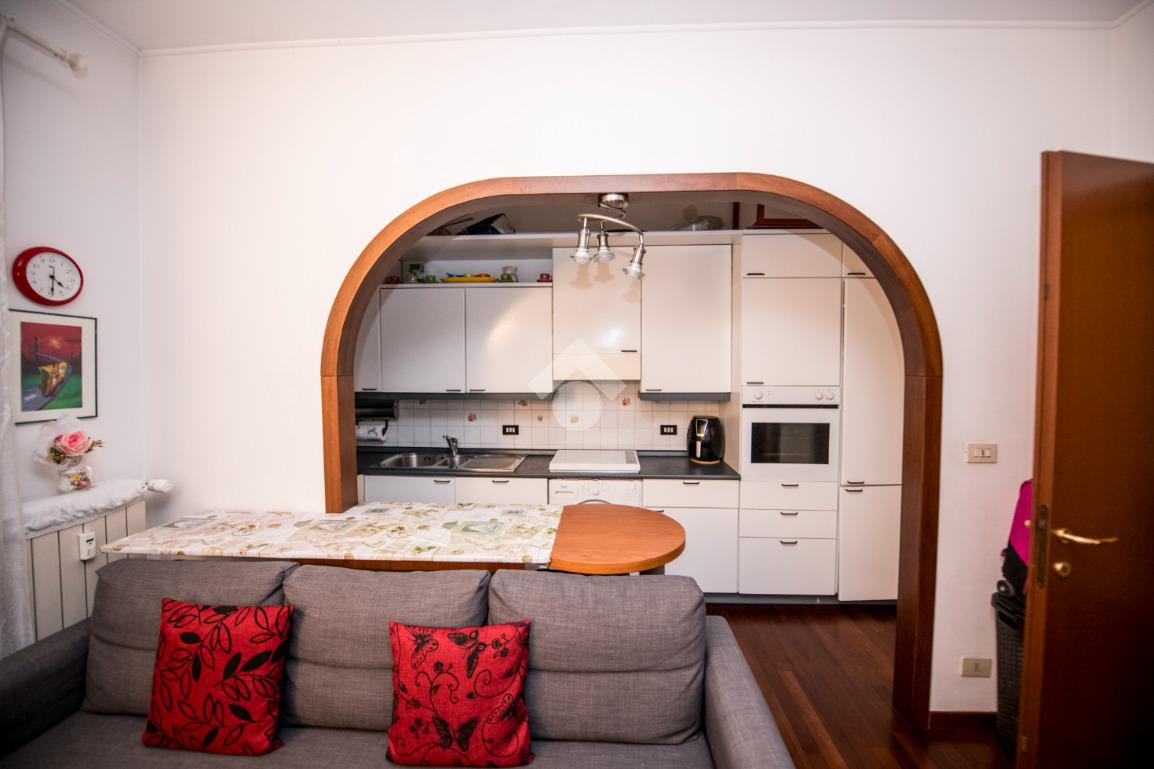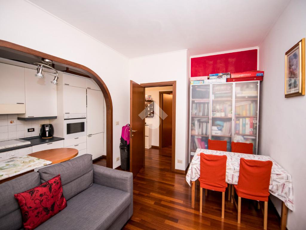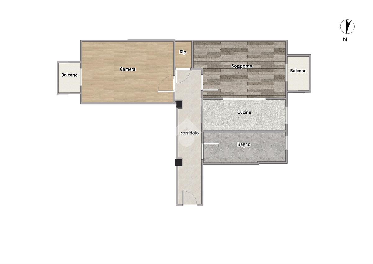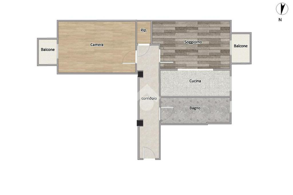 L'appartamento è composto da ingresso che conduce al soggiorno con cucina a vista tramite apertura ad arco che caratterizza la zona giorno, completa di balcone. Tramite il disimpegno si accede alla camera matrimoniale con balcone, infine il bagno finestrato con doccia ed il rispostiglio.