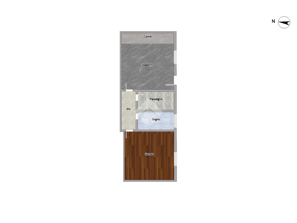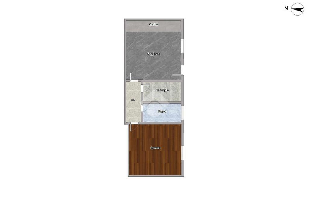L'appartamento è composto da ingresso direttamente sul soggiorno con cucina a vista, camera matrimoniale ampia, bagno finestrato con doccia ed infine il ripostiglio.