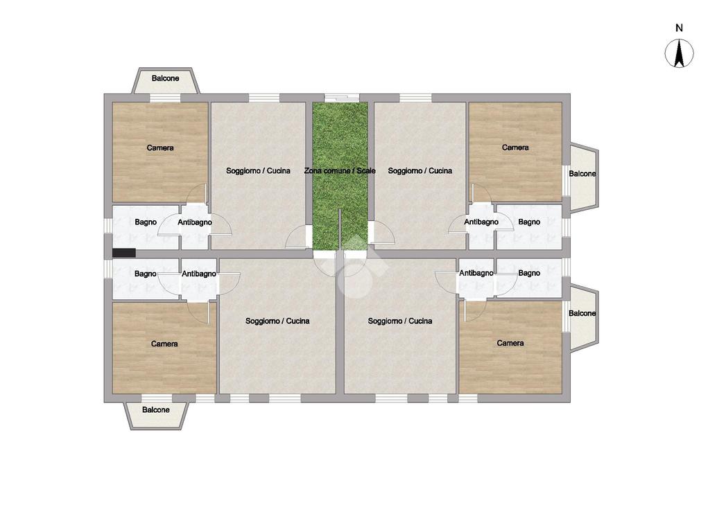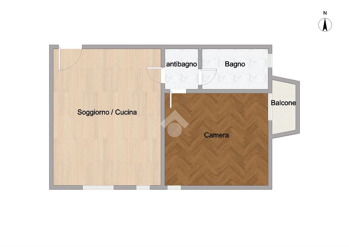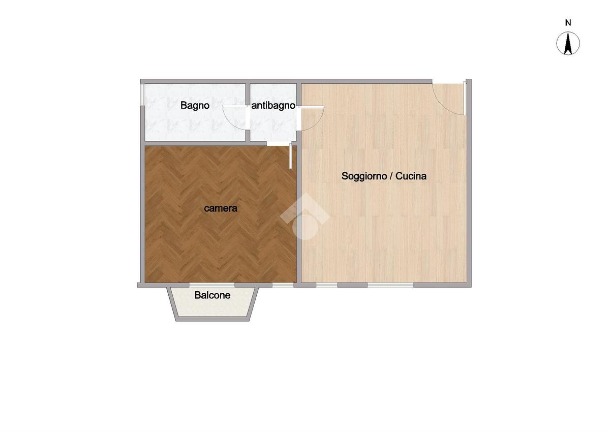 Le soluzioni abitative, dotate di doppia esposizione, sono composte da due locali oltre i servizi: ingresso sul soggiorno con cucina a vista, tramite l'antibagno, con l'attacco per la lavatrice, si accede alla camera matrimoniale ed al bagno finestrato con doccia.