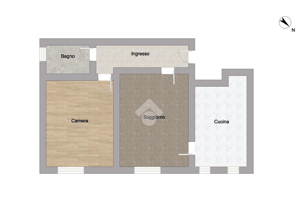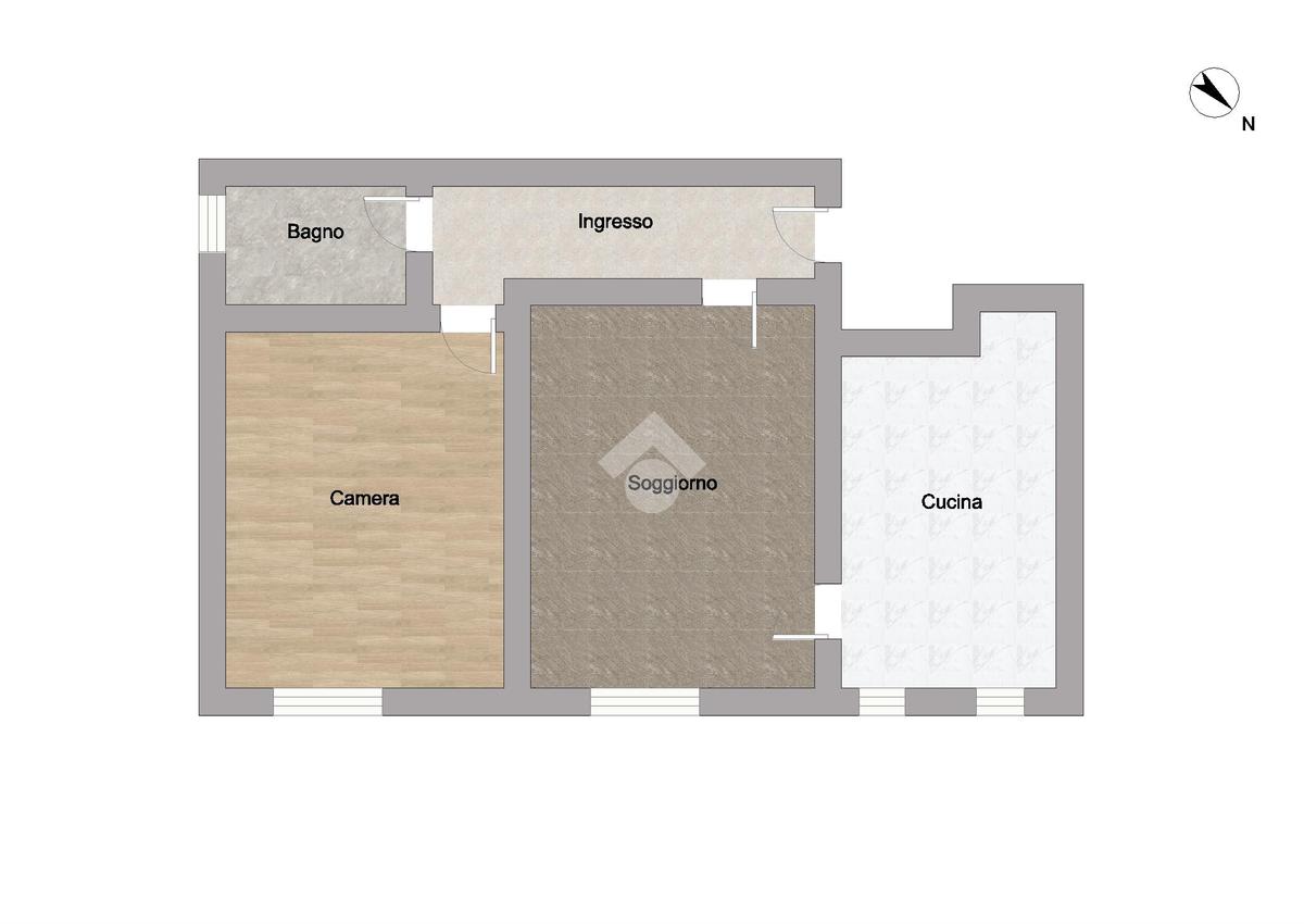 L'appartamento è composto da ingresso che conduce al soggiorno con accesso alla cucina abitabile. Tramite il disimpegno si accede alla camera matrimoniale, infine il bagno finestrato con doccia.